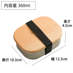 Sサイズ 360ml123×103×45mm Mサイズ 670ml158×123×60mm 小判型 570ml197×82×60mm Sサイズ 朱黒 360ml123×103×45mm Mサイズ 朱黒 670ml158×123×60mm 小判型 朱黒 570ml197×82×60mm サイズ 約 幅 12.3cm × 奥行 10.3cm × 高さ 4.5cm 容量 約 360ml 重量 約 120g 素材 本体:18-8ステンレス鋼(クローム18% ニッケル8%) フタ:杉(古代杉) バンド:ゴム 生産国 日本 キッチン総合 ランキング