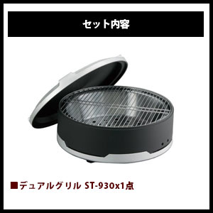 ≪DUAL GRILL ST-930≫ 本体サイズ:直径31×高さ17cm重量:5kg材質:フタ・本体・受け皿=アルミ鋳物、焼きアミ・炭受け=ステンレス、台座=ゴム原産国:日本セット内容:フタ×1、焼きアミ×1、炭受け×1、本体×1、受け皿×1、リフター×2、収納ケース×1●備考 ●初心者から本格派まで簡単・手軽にアウトドアクッキングを楽しめる万能グリル。