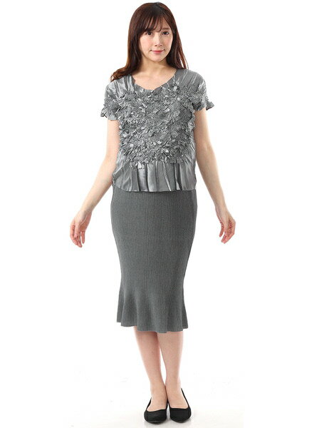 ブランド名 SPECCHIO PLEATS MADE IN 中国 COLOR ・グレー MATERIAL ポリエステル 100%別布:ポリエステル 100%スパンコール・ビーズ お手入れ:ドライクリーニング/手洗い可 手洗い方法はこちら>> 商品の特徴 ・Gプリーツ加工 ・前身頃、後身頃、袖:Gプリーツ加工 ・前身頃:スパンコール、ビーズ&モチーフ刺繍加工 ・裾:ヒダプリーツ加工 ・ラウンドネック ・フレンチスリーブ ・裏地無 ・前身頃を飾るGプリーツとモチーフ刺繍、華やかなブラウストップです ・お揃いのボレロ ジャケットとあわせたアンサンブルStylingも素敵です(別売り) ノンマタニティウェア マタニティ専用ウェアではないけれど、マタニティに対応できる洋服 変化していくマタニティ期の体に対応できるプリーツアイテム。