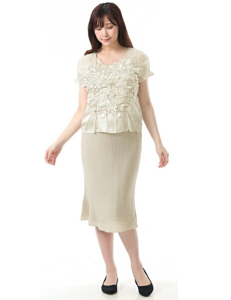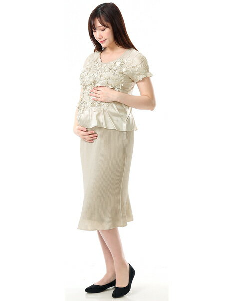 ブランド名 SPECCHIO PLEATS MADE IN 中国 COLOR ・ベージュ MATERIAL ポリエステル 100%別布:ポリエステル 100%スパンコール・ビーズ お手入れ:ドライクリーニング/手洗い可 手洗い方法はこちら>> 商品の特徴 ・Gプリーツ加工 ・前身頃、後身頃、袖:Gプリーツ加工 ・前身頃:スパンコール、ビーズ&モチーフ刺繍加工 ・裾:ヒダプリーツ加工 ・ラウンドネック ・フレンチスリーブ ・裏地無(透けます) ・前身頃を飾るGプリーツとモチーフ刺繍、華やかなブラウストップです ・お揃いのボレロ ジャケットとあわせたアンサンブルStylingも素敵です(別売り) ノンマタニティウェア マタニティ専用ウェアではないけれど、マタニティに対応できる洋服 変化していくマタニティ期の体に対応できるプリーツアイテム。